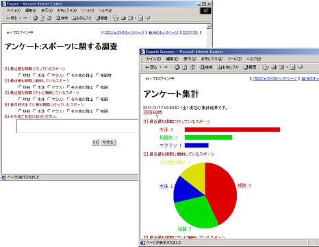 お互いの調べたことを比べるときは,グラフで示すとわかりやすいですね。「はじめての共同学習」では,項目を作成して解答すると,自動でグラフを作成する機能があります。