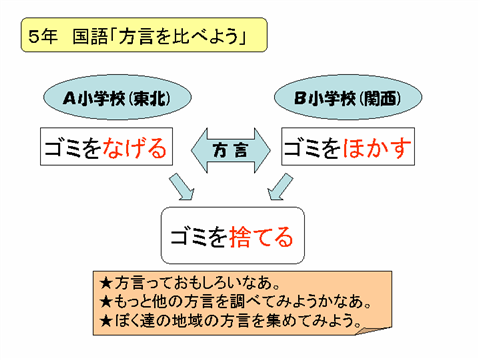 方言を比べるときは,クイズ形式で出してみると盛り上がります。実際の話す様子,イントネーションも聞きたいときには,テレビ会議と組み合わせるのもよいでしょう。
