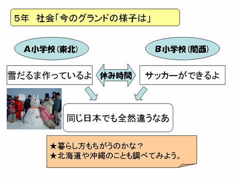 寒い土地とあたたかい土地の暮らしを比べるには,写真を使うと効果的ですね。「掲示板」なら,写真つきでお互いの様子を伝えることができます。
